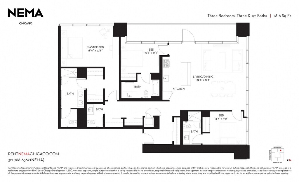 Studio to 4 Bedroom Apartments at NEMA Chicago currently range from $2,408 to $14,900