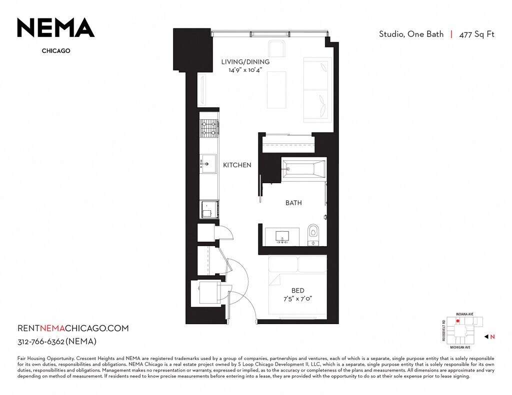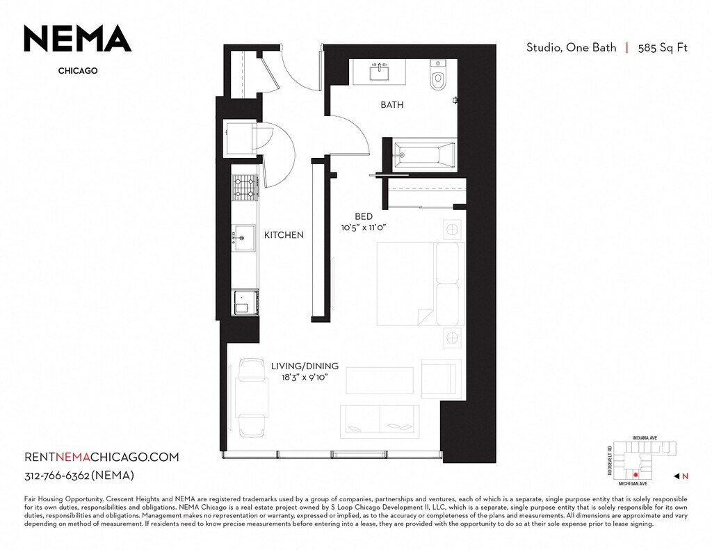 NEMA Chicago offers Studio to 3 Bedroom apartments starting from $2,309 and having 471–1,868 sq ft. Here is the current pricing and availability: