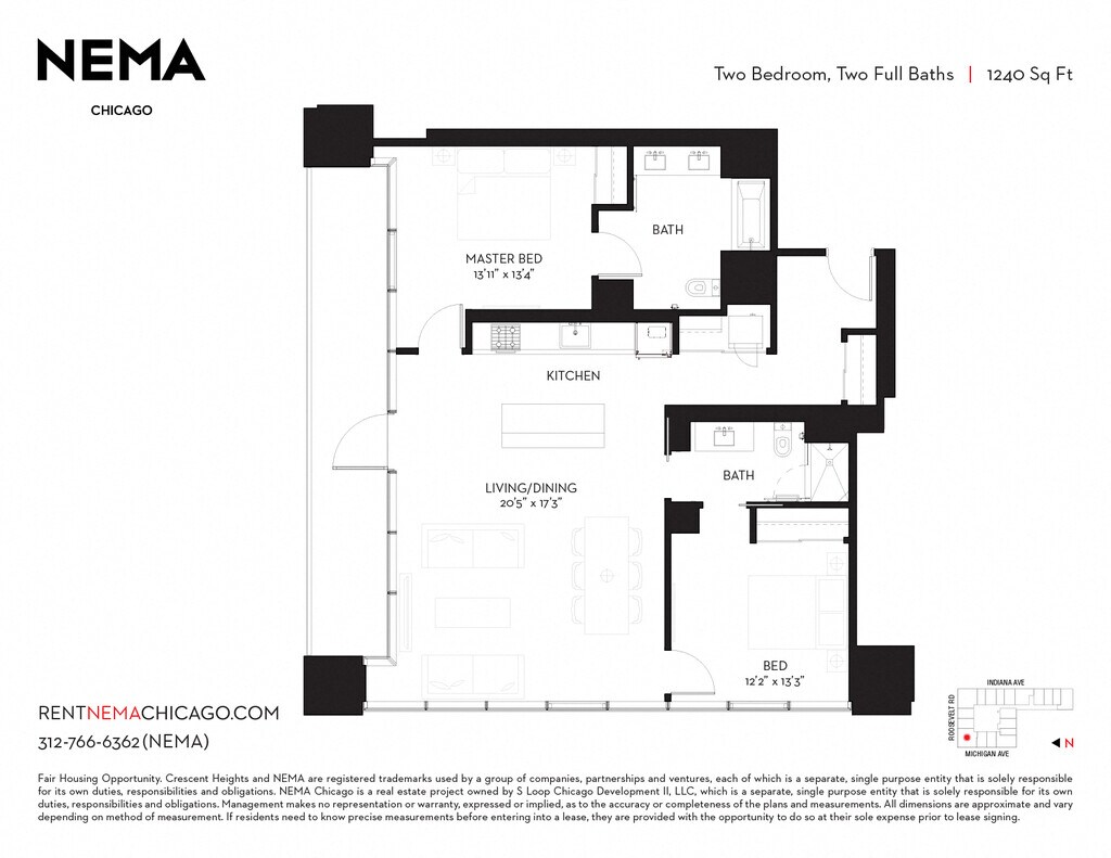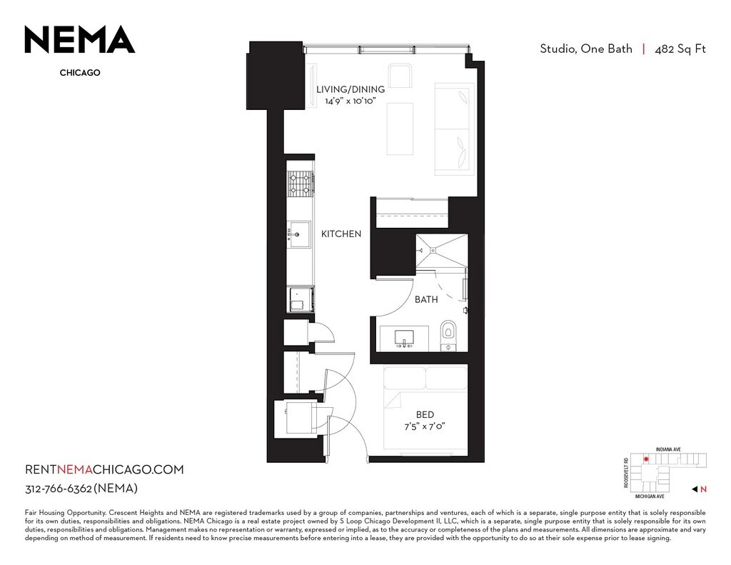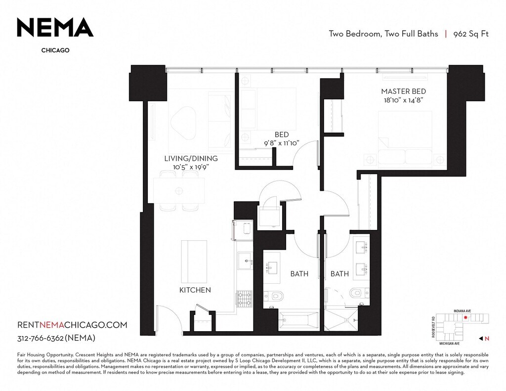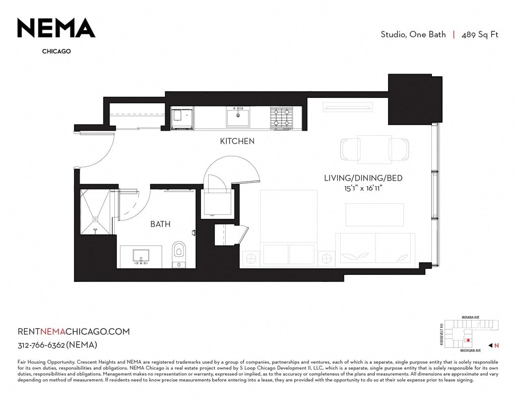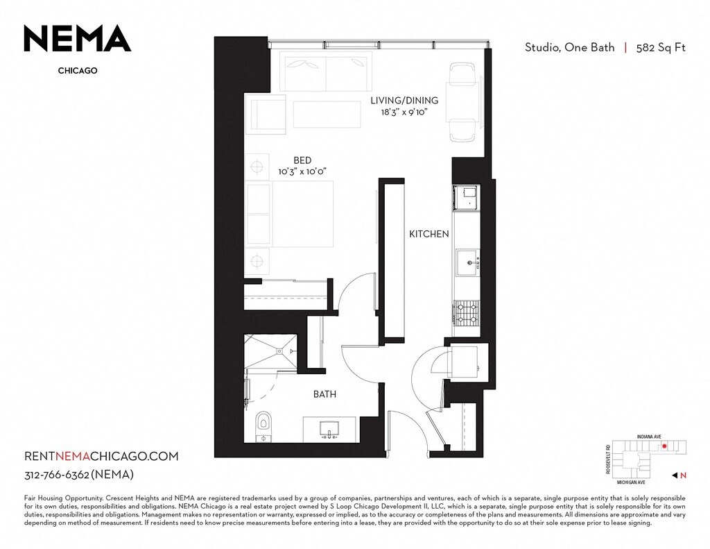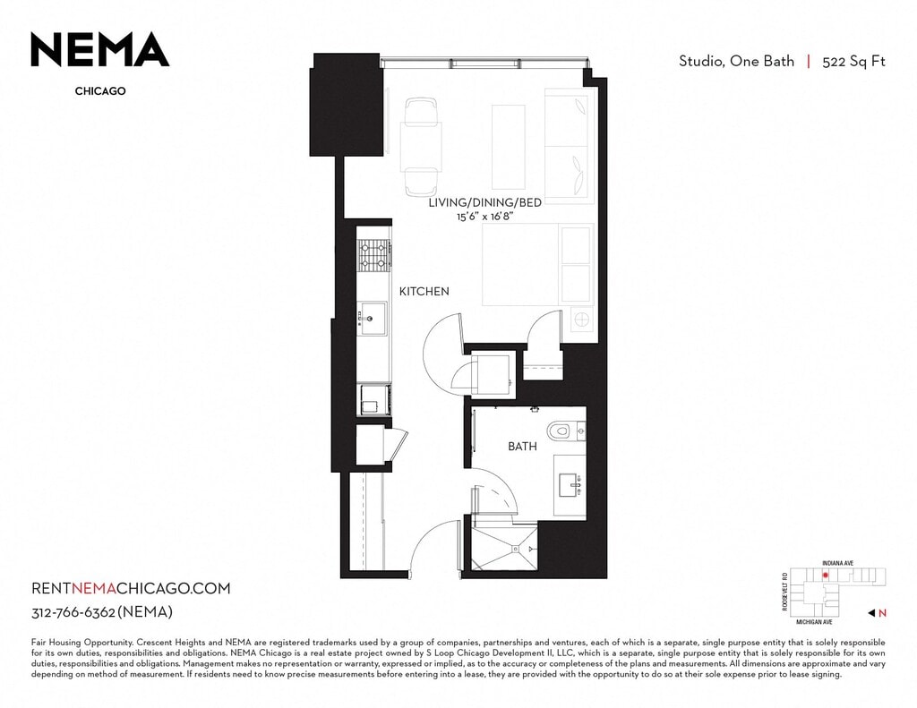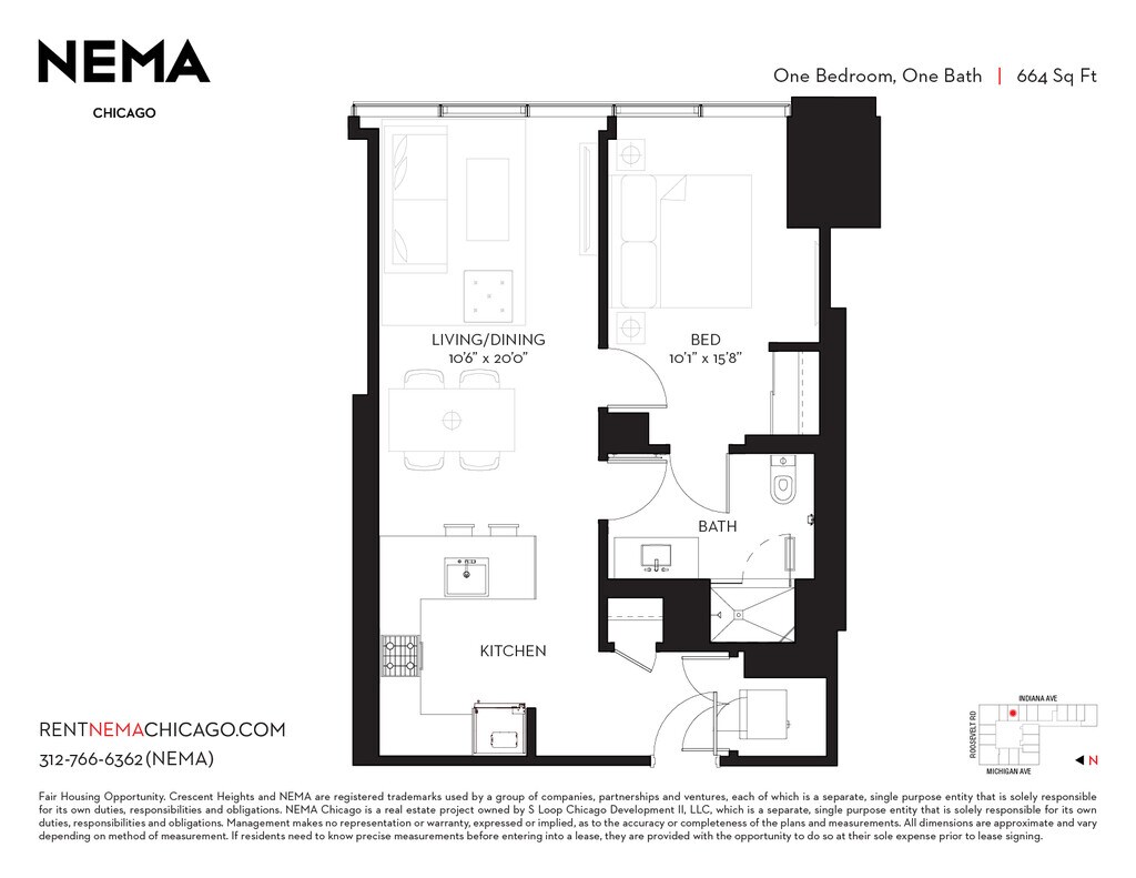 Everything you need is already home. The citys smartest residence, NEMA Chicago is a 76-story architectural icon located on Grant Park, designed by Rafael Vinoly and David Rockwell, and boasting unprecedented lake, park, and city views. NEMAs 70,000-square-foot collection of amenities is complemented by tech-powered service and bespoke lifestyle programming, offering a full calendar of exclusive resident events and 12+ weekly fitness classes. Smart-home-ready residences, ranging from studios to four-bedrooms, present the perfect canvas for personalized comfort and feature expansive floor-to-ceiling windows; many apartments also come with large balconies and terraces for those priceless city moments of calm and fresh air. NEMAs coveted location at the Michigan Ave and Roosevelt Rd corner of Grant Park means Chicago's "Front Yard" serves as residents ultimate playground. Schedule a virtual or in-person tour today and find out what makes NEMA a Home Made Better.