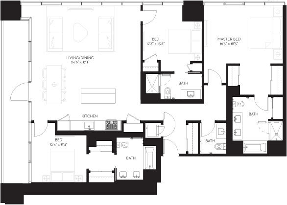 | Chicago 3 Bedroom Apartments | $3,516 | $788 | $10,000+ |