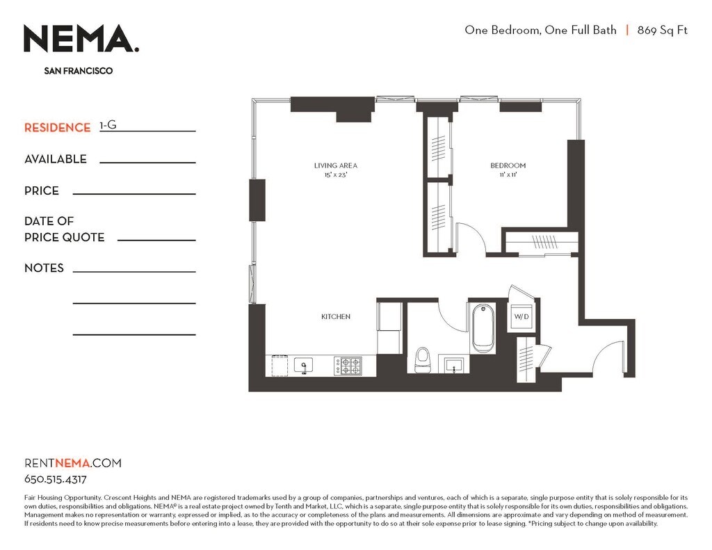 NEMA offers Studio to 2 Bedroom apartments starting from $3,485 and having 470–1,442 sq ft. Here is the current pricing and availability:
