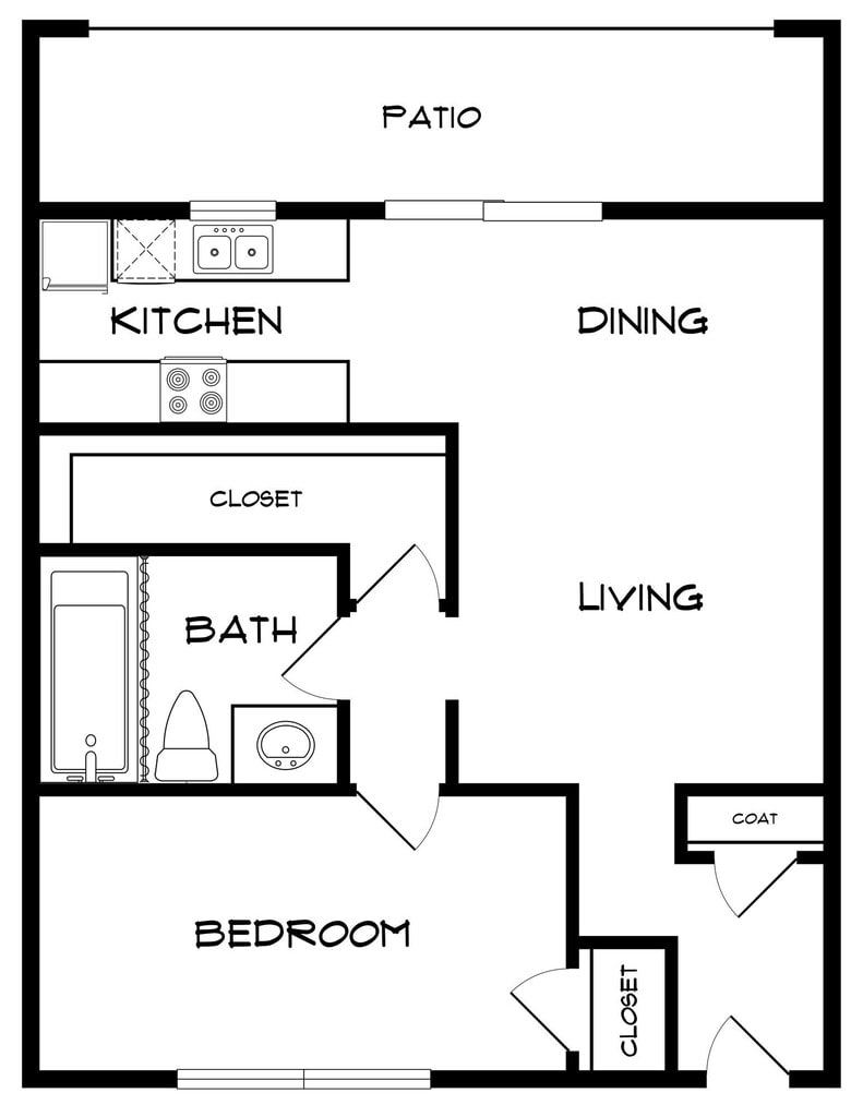 A1 - Floorplan 1 Apartment Unit: A8Apartment Model: A11 Bedroom, 1 Bath, 675 sq ftAvailable NowApartment Unit: E8Apartment Model: A11 Bedroom, 1 Bath, 675 sq ftAvailable Now2 Bedrooms