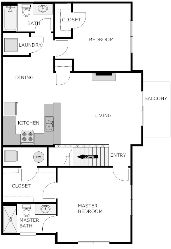 2 Bed 2 Bath Upper Split - Floorplan 2