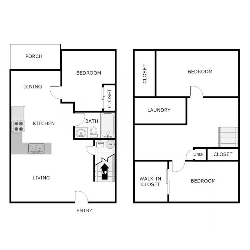 3 Bedroom 2 Bathroom - Townhome - Floorplan 1 4 Bedrooms