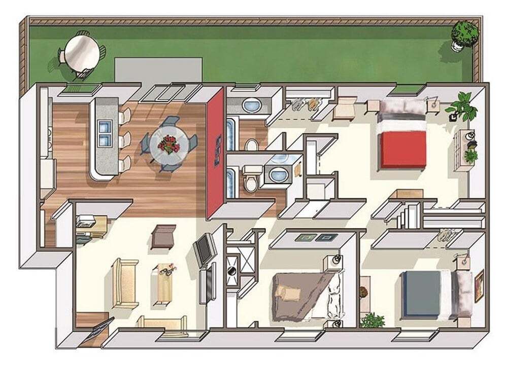 Esplanade - Floorplan 1 Apartment Unit: 624-FApartment Model: EsplanadeCall For Rates2 Bedroom, 2 Bath, 905 sq ftAvailable Now3 Bedrooms