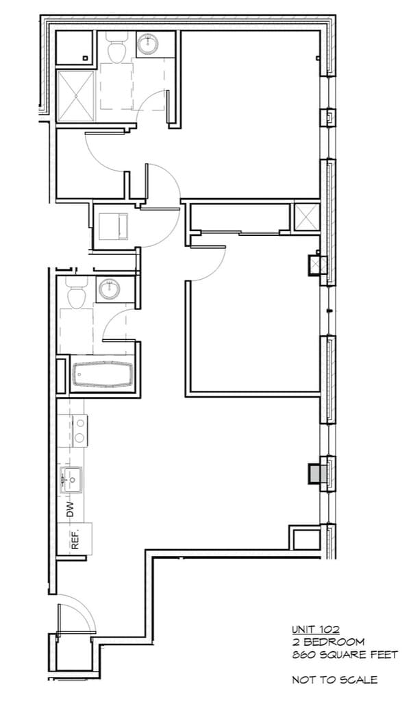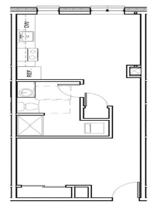 Studio 205-605 - Floorplan 1 Long Studio 211-611