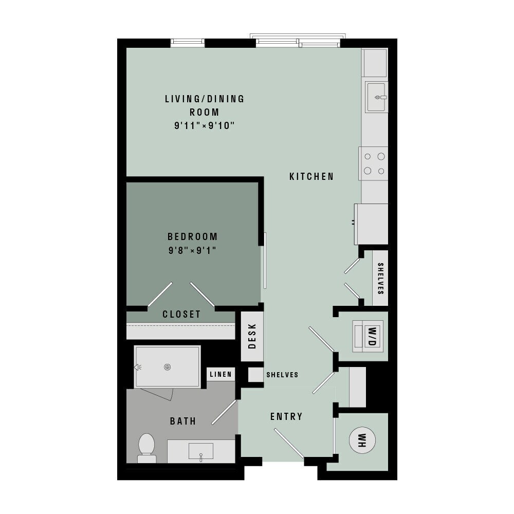 Apartment Model: S1$1,375Studio, 1 Bath, 618 sq ftAvailable NowFloor plans are artist's rendering. All dimensions are approximate. Actual product and specifications may vary in dimension or detail. Not all features are available in every rental home. Prices and availability are subject to change. Base rent is based on monthly frequency. Additional fees may apply, such as but not limited to package delivery, trash, water, amenities, etc. Deposits vary. Please see a representative for details.