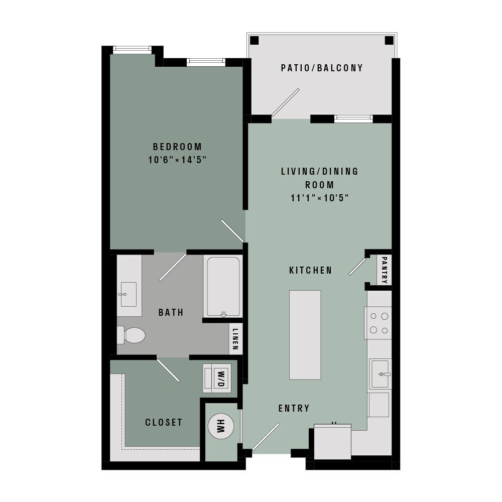 Apartment Model: A1From $1,4991 Bedroom, 1 Bath, 689 sq ftAvailable NowFloor plans are artist's rendering. All dimensions are approximate. Actual product and specifications may vary in dimension or detail. Not all features are available in every rental home. Prices and availability are subject to change. Base rent is based on monthly frequency. Additional fees may apply, such as but not limited to package delivery, trash, water, amenities, etc. Deposits vary. Please see a representative for details.