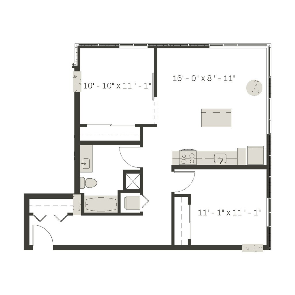 a1.1 - Floorplan 11 Apartment Unit: 1512Apartment Model: a1.1$1,5901 Bedroom, 1 Bath, 565 sq ftAvailable NowFloorplansPhotos![]()