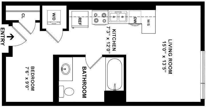 Studio, 1 Bath, 443 sq ftModel Gallery