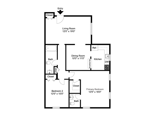 Two Bedroom 1.5 Bath - Floorplan 1 ![]()
