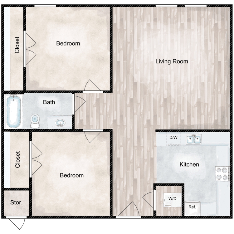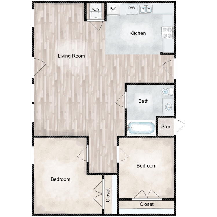 Apartment Model: 2 Bed 1 Bath G2 Bedroom, 1 Bath, 858 sq ftAvailable Now![]()