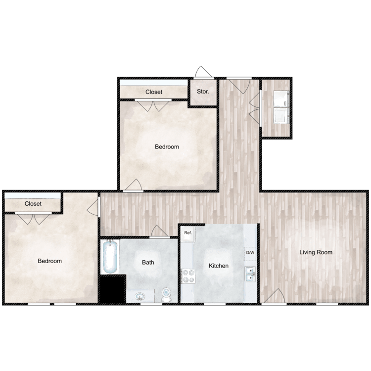 2 Beds, 1 Bath, 857 sq ftAvailable NowModel Gallery