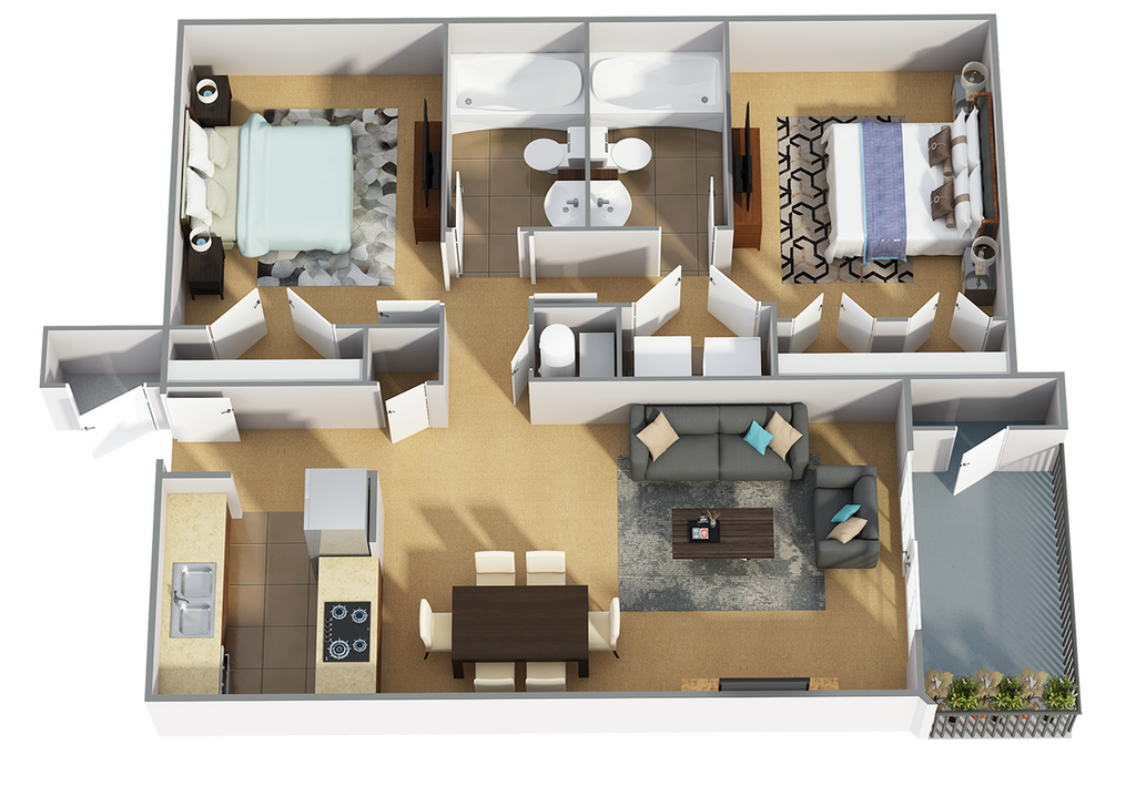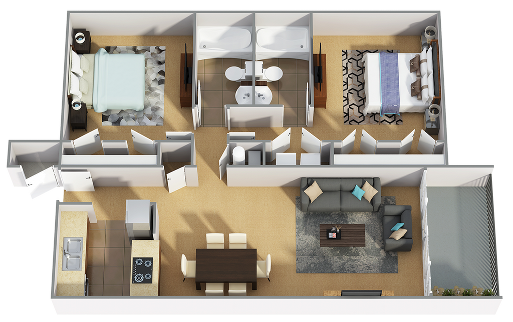 2 Beds, 2 Baths, 1005 sq ftModel Gallery