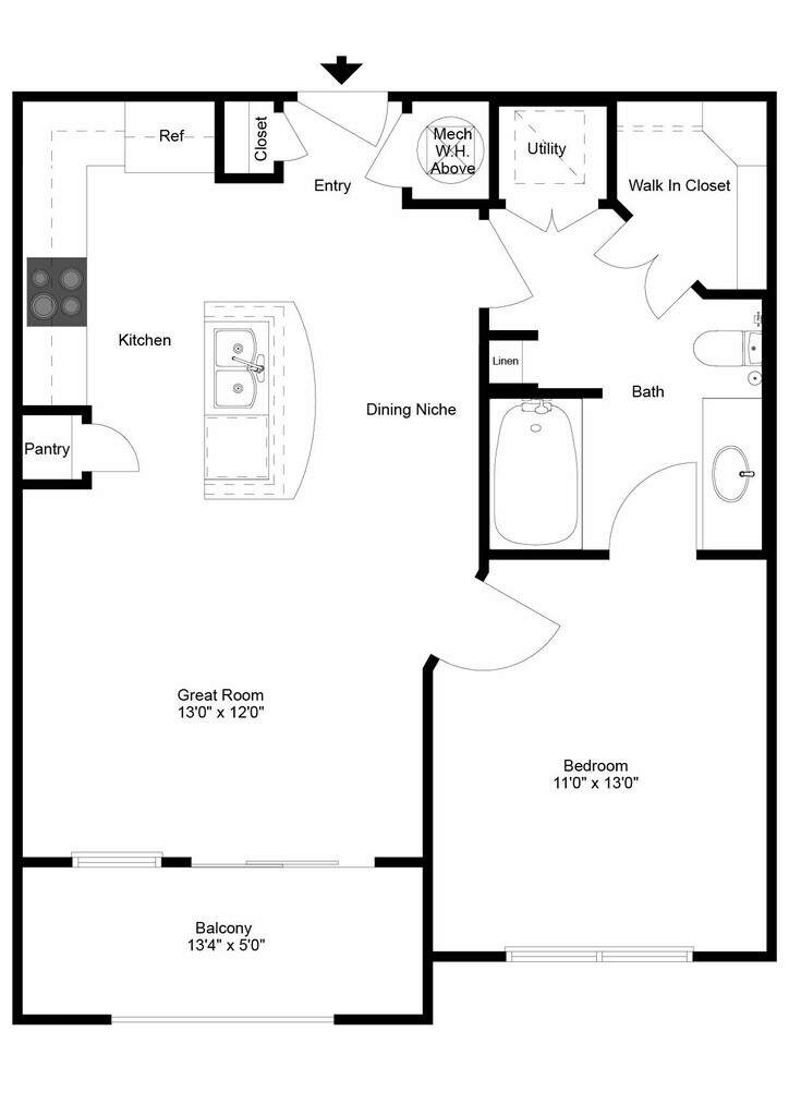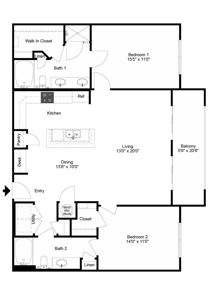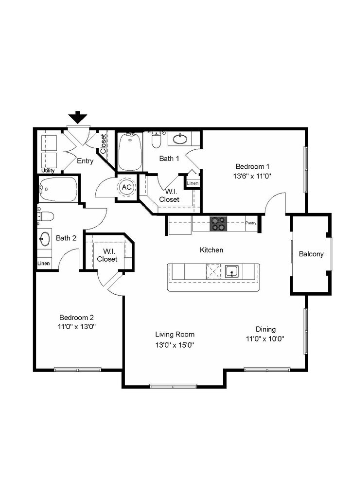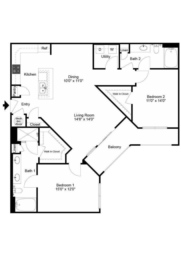 1 Bed, 1 Bath, 670 sq ftAvailable NowModel Gallery