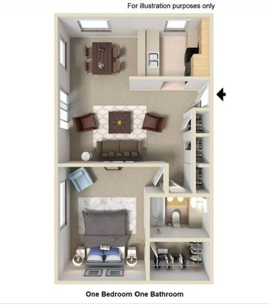 1 Bed, 1 Bath, 682 sq ftAvailable NowLargest 1 BedroomThis is the largest 1 Bedroom at this PropertyModel Gallery