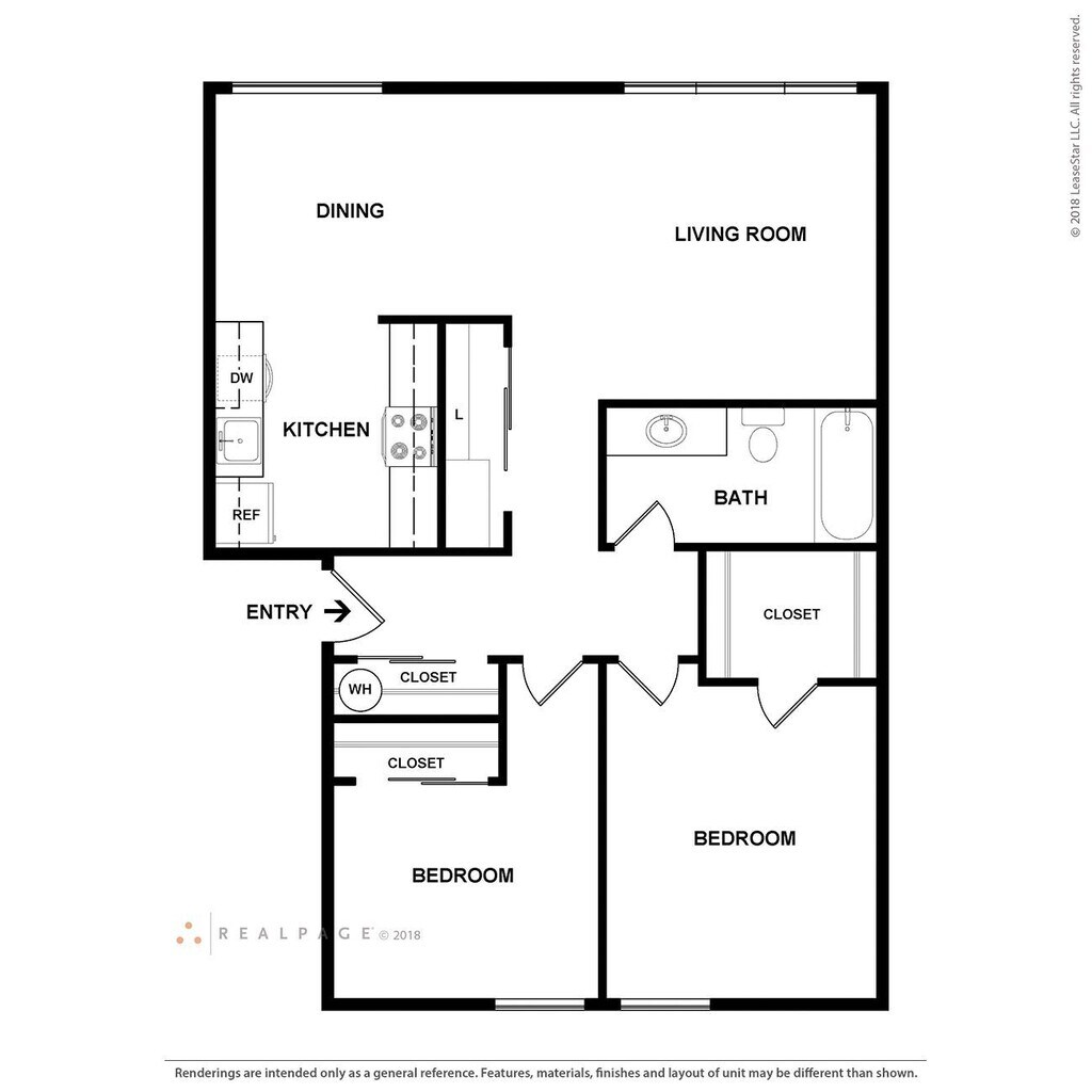 2 Beds, 1 Bath, 812 sq ftAvailable NowLargest 2 BedroomThis is the largest 2 Bedroom at this PropertyModel Gallery