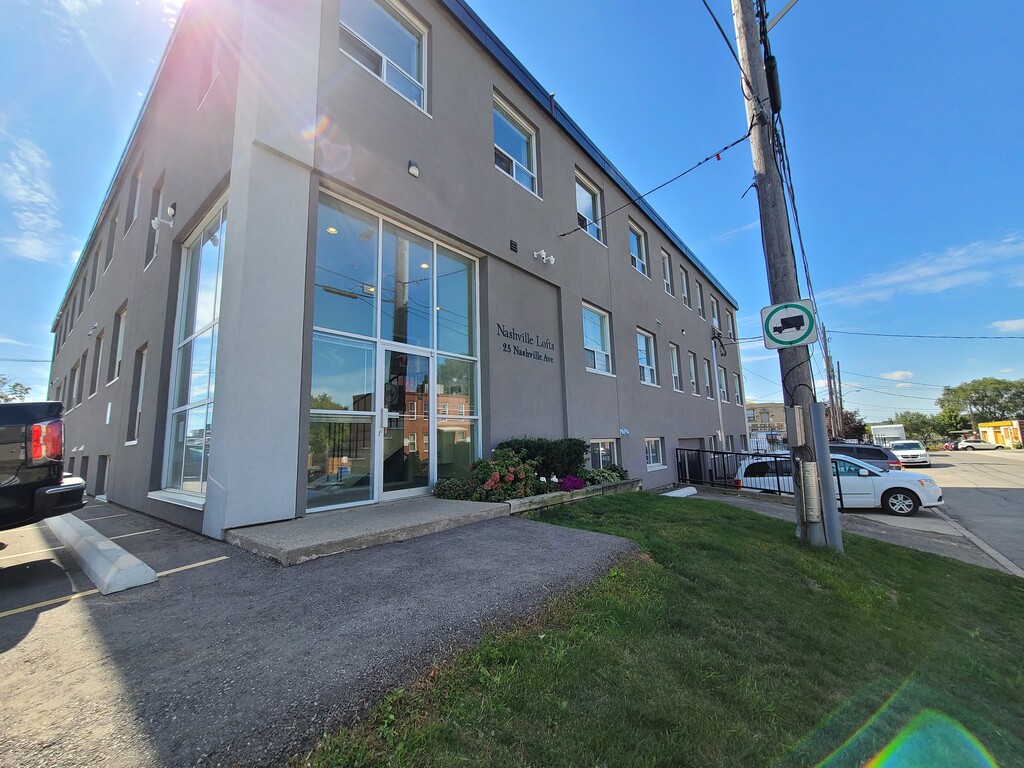 This 2 storey building has large open-concept residential apartment units. Once inside the door to each unit, you'll feel the openness of the 11 foot ceilings, open floor plan and large windows. There are no bedroom walls; you decide your layout. Each recently renovated residential studio loft has duraplank flooring, large windows, ceiling fan and central heating. The kitchen area was recently renovated and is equipped with a stainless-steel fridge, stove and microwave. Entry to this 2 storey building is secured by an entry-phone system in the lobby. There are security cameras around the property. There is outdoor assigned parking available. Coin-operated high-efficiency front-loading laundry machines and a vending machine are on-site. The rent includes heat. The building is north of St. Clair Avenue, and west of Keele Street in the Weston neighbourhood of Toronto. It is one block from TTC bus stops that have buses that go to Keele, Dundas West and Ossington subway stations, and is 1 km from the Keelesdale Crosstown station, opening soon. There are grocery stores within walking distance. Keelesdale and Coronation parks are nearby. For commuters, it is only a 5 km drive to the 400/401 interchange.
