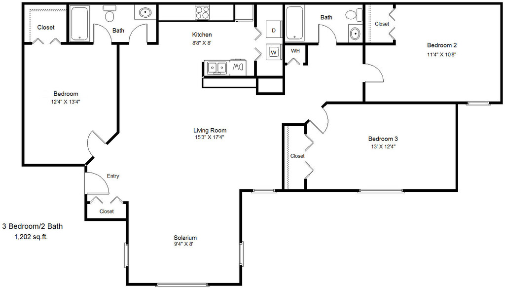 Apartment Model: Three Bedroom3 Bedroom, 2 Bath, 1087-1202 sq ftAvailable Now![]()