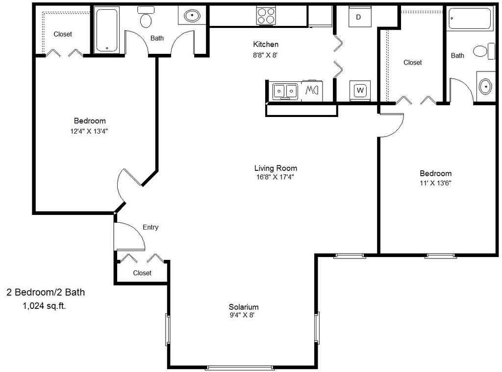 Apartment Model: Two Bedroom2 Bedroom, 2 Bath, 914-1152 sq ftAvailable Now![]()