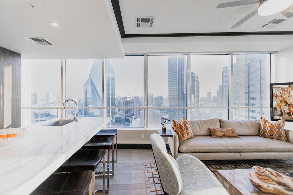 Welcome to The National Residences, where comfort meets sophistication in the heart of Downtown Dallas. Our collection of high rise apartments in Downtown Dallas offers stunning views through floor-to-ceiling windows, allowing you to soak in the vibrant cityscape. With a variety of new apartments in Downtown Dallas, we cater to every lifestyle, whether you’re searching for a cozy 1-bedroom or a spacious 3-bedroom floor plan. Experience the community charm and luxury of the best apartments in Downtown Dallas, designed to elevate your living experience. At The National Residences, we’re dedicated to providing an inviting atmosphere complemented by exceptional amenities. Enjoy our exclusive Monarch Mondays Resident Discount, or take advantage of our resident credit-building program by paying your monthly rent on time. Unwind at our resort-style pool with pool-side food and beverage service from the Cabana Bar and Restaurant, or explore our expansive 2-acre indoor/outdoor amenity deck. With our prime location and top-tier features, you’ll understand why our Downtown Dallas luxury apartments are the perfect place to call home.