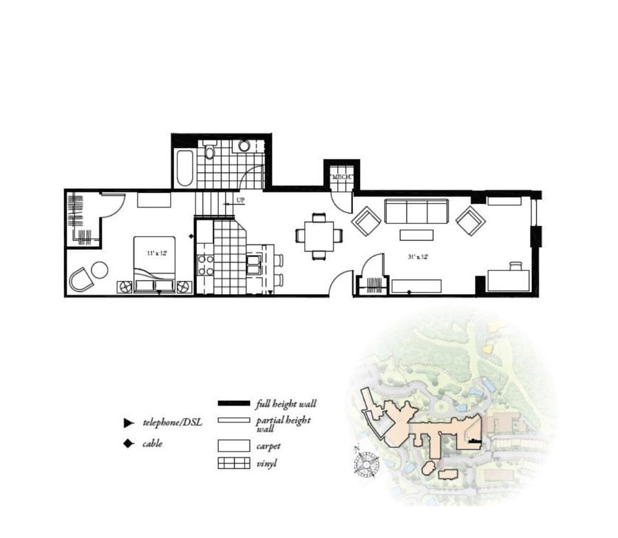 1 Bedroom 1 Bath - Floorplan 2 ![]()