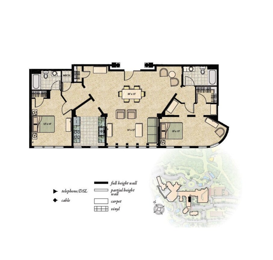2 Bedroom 2 Bath - Floorplan 1 ![]()
