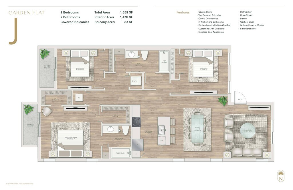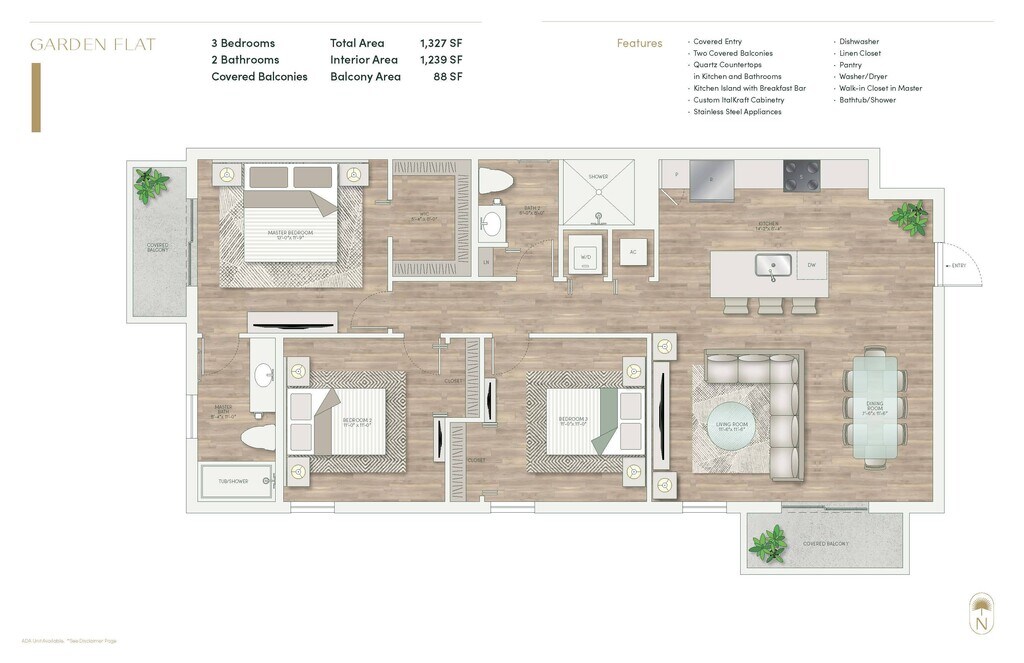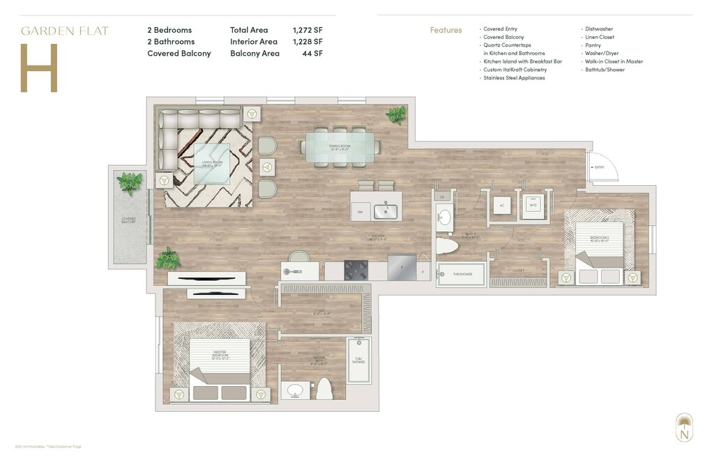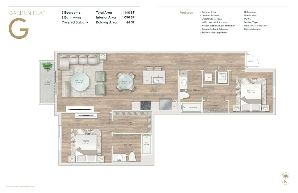 Apartment Model: Garden Flat GFrom $2,5992 Bedroom, 2 Bath, 1109-1125 sq ftAvailable NowFloor plans are artist's rendering. All dimensions are approximate. Actual product and specifications may vary in dimension or detail. Not all features are available in every rental home. Prices and availability are subject to change. Base rent is based on monthly frequency. Additional fees may apply, such as but not limited to package delivery, trash, water, amenities, etc. Deposits vary. Please see a representative for details.