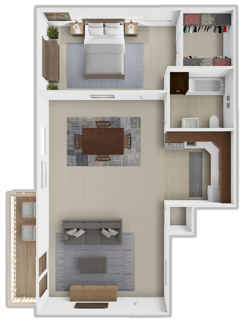 1 Bed, 1 Bath, 812 sq ftAvailable NowLargest 1 BedroomThis is the largest 1 Bedroom at this PropertyModel Gallery