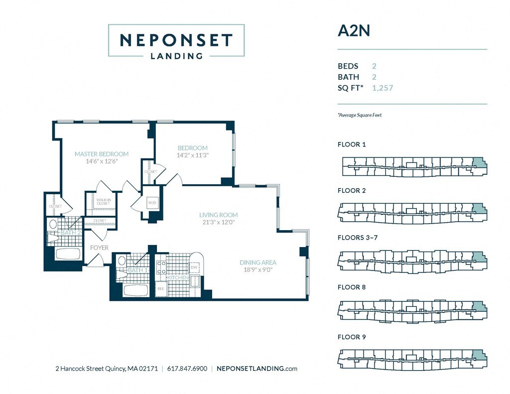 Neponset Landing offers 1 to 2 Bedroom apartments starting from $2,515 and having 576–1,287 sq ft. Here is the current pricing and availability: