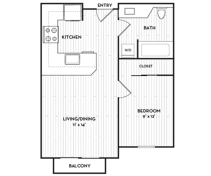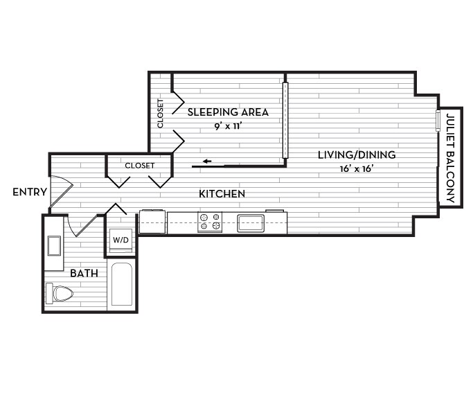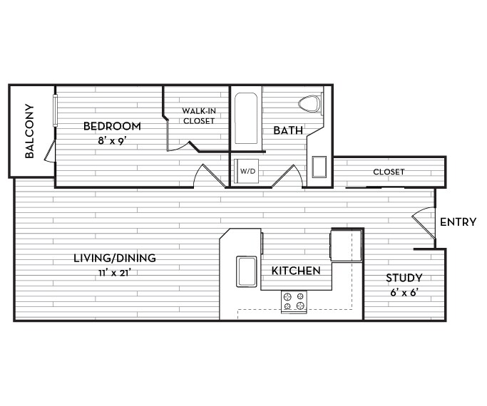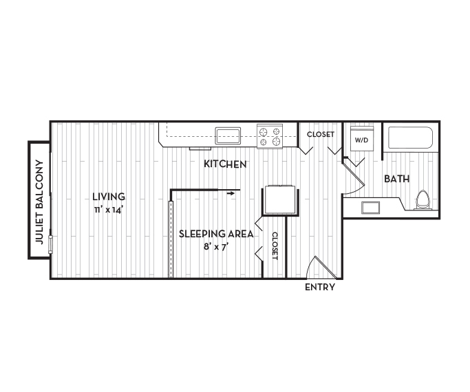 Studio, 1 Bath, 504 sq ftAvailable NowModel Gallery