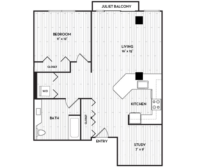 Studio, 1 Bath, 590-613 sq ftModel Gallery