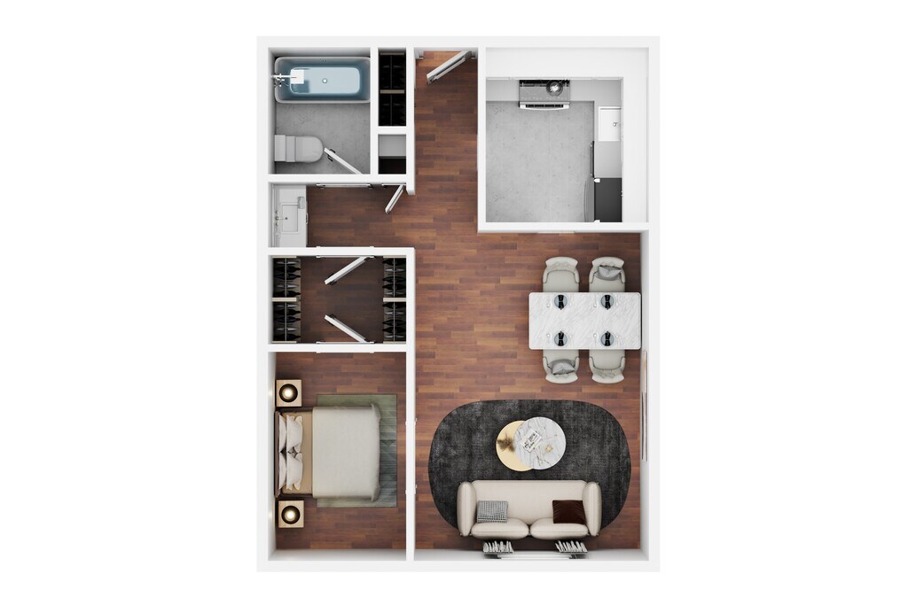 1 Bed, 1 Bath, 679 sq ftModel Gallery