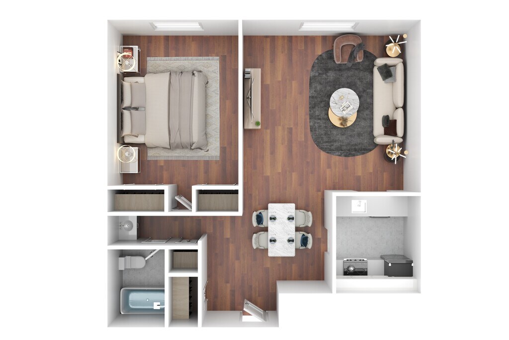 1 Bed, 1 Bath, 679 sq ftAvailable NowModel Gallery