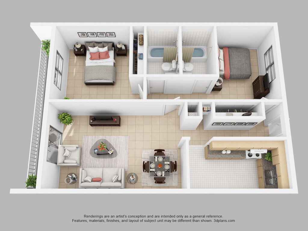 2 Beds, 2 Baths, 1007 sq ftAvailable NowModel Gallery