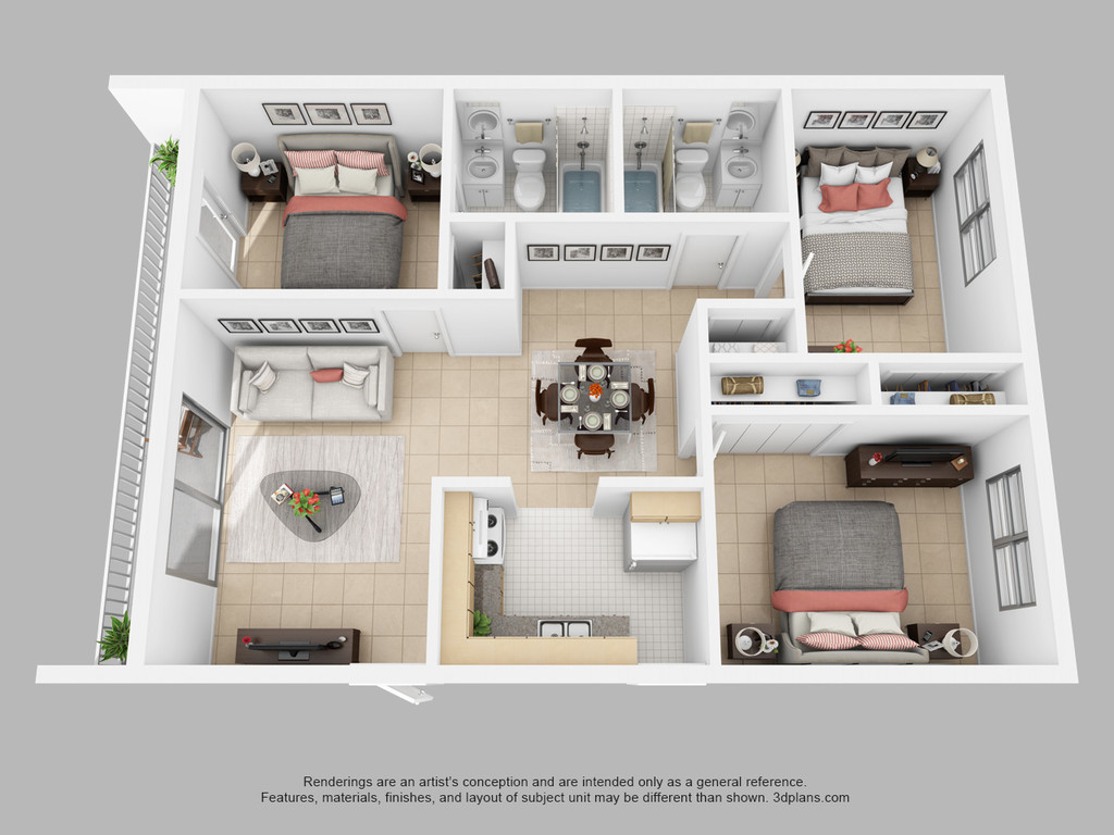 3 Beds, 2 Baths, 1300 sq ftAvailable NowModel Gallery