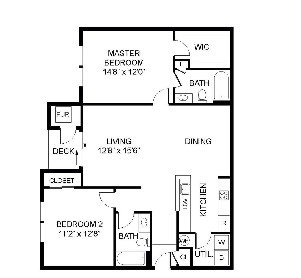 Apartment Model: 2B DeluxeFrom $2,2502 Bedroom, 2 Bath, 1064 sq ftUnavailable2B Deluxe - Floorplan 1