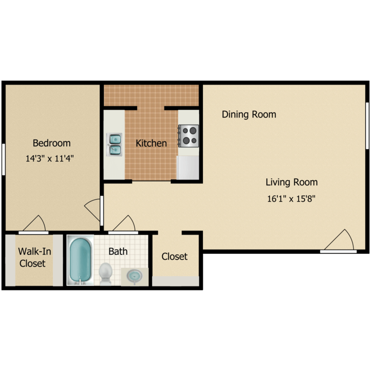 1 Bed 1 Bath - Floorplan 1 ![]()