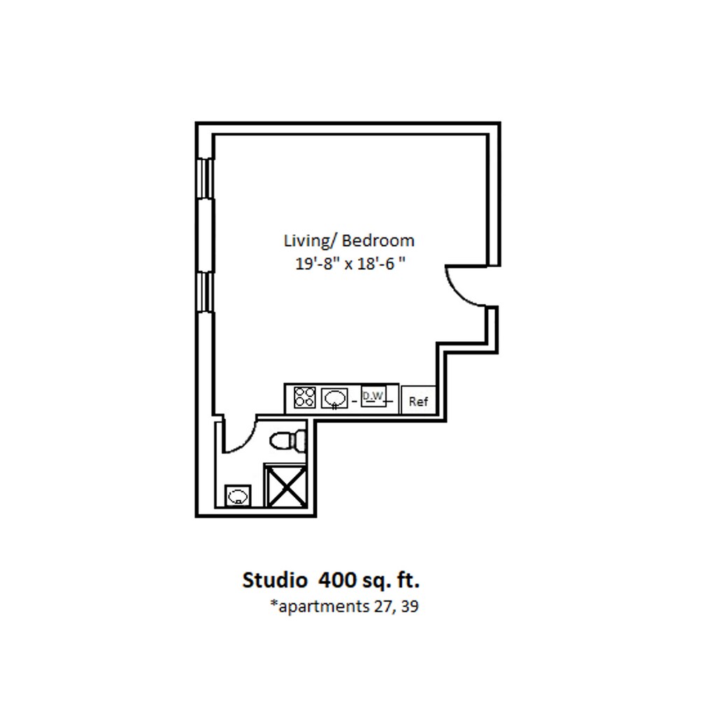 - Studio- 0BR/1.0BA- $1,375Studio, 1 Bath, 400 sq ftPlus FeesAvailable Now- Model Gallery- Photos- Availability Details- Price - Availability Date - Unit - Sq Ft - Photos - $1,375 - Available Now - 27 - 400 - Unit 27 Gallery- Photos- Unit 27 Amenities and Features- Unique Features- 24/7 Fitness Center