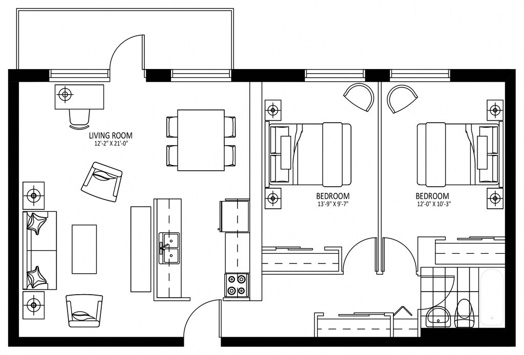 2 Beds, 1 Bath, 965 sq ftAvailable NowModel Gallery
