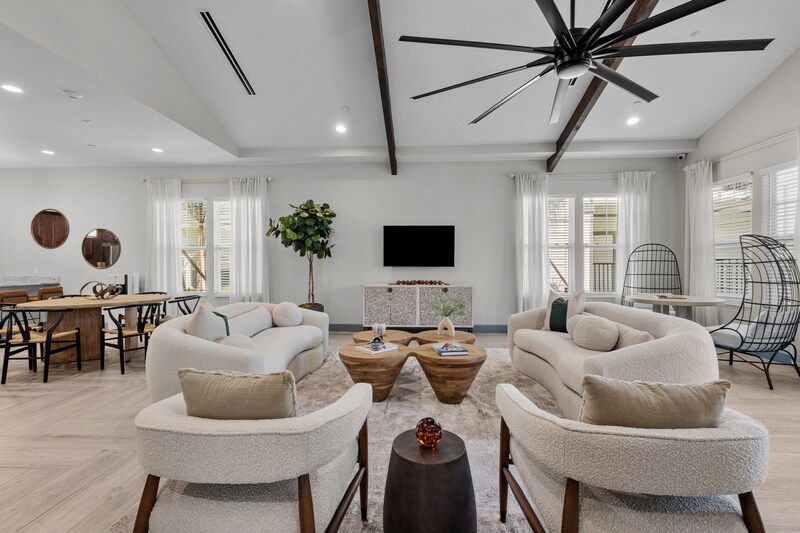 New Construction! New Tampa Palms is a brilliantly conceived gated resort-style rental community, a warm and welcoming neighborhood of spacious contemporary one- and two-bedroom apartment residences in a prized and convenient location that puts the best of Tampa just minutes from your door. This is a place — a home, a community, a way of life — that you’ll enjoy every day, whether lounging by the pool, strolling around the lake, sitting by a fire, or gathering with friends in the inviting Palms Clubhouse. New Tampa Palms offers an exciting collection of one- and two-bedroom apartments all with patios or balconies with extra storage space, and soaring ceiling heights that range from 9 to 16 feet. Each elegant residence features gourmet kitchens with custom white wooden cabinetry, top-grade granite countertops, gooseneck faucets, breakfast bars and pantries, walk-in closets, and laundry rooms with a full-size washer and dryer in every home. Set amid natural woods and wetlands conservation areas, New Tampa Palms is the quintessential Gulf Coast community featuring a welcoming clubhouse, resident lounge, catering kitchen, and fitness center, as well as a host of resort-style amenities including a luxurious swimming pool, sundeck, veranda, pergola, al fresco dining, and lounge areas with firepits. A private community lake offers nature trails, a walking path and a spectacular center-piece fountain. New Tampa Palms provides convenient resident parking with EV charging stations and is pet-friendly with a dedicated dog run. Close to shopping, restaurants, parks, and culture, New Tampa Palms offers easy access to downtown Tampa, the University of South Florida, Busch Gardens, Tampa Zoo, Crunch Fitness, the local YMCA, parks, beaches, and countless lakes and nature preserves. Designed and developed by Garden Communities, New Tampa Palms reflects this premier builder’s commitment to creating exceptional suburban communities in Florida. New Tampa Palms. The Best of Tampa. In The Palm of Your Hand.