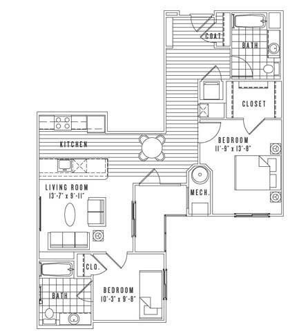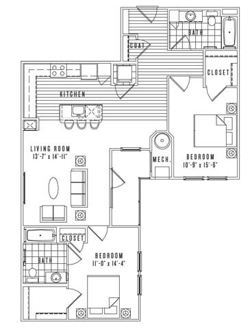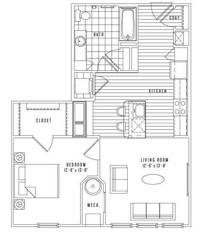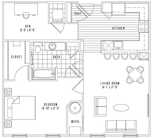 Apartment Model: A13From $3,1111 Bedroom, 1 Bath, 841 sq ftAvailable NowFloor plans are artist's rendering. All dimensions are approximate. Actual product and specifications may vary in dimension or detail. Not all features are available in every rental home. Prices and availability are subject to change. Base rent is based on monthly frequency. Additional fees may apply, such as but not limited to package delivery, trash, water, amenities, etc. Deposits vary. Please see a representative for details.