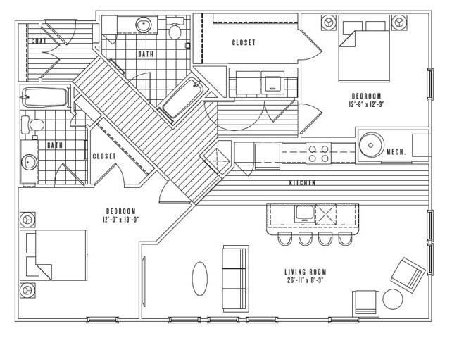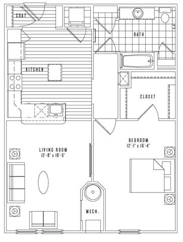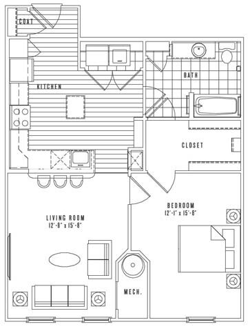 Apartment Model: A12Call For Rates1 Bedroom, 1 Bath, 747 sq ftUnavailableFloor plans are artist's rendering. All dimensions are approximate. Actual product and specifications may vary in dimension or detail. Not all features are available in every rental home. Prices and availability are subject to change. Base rent is based on monthly frequency. Additional fees may apply, such as but not limited to package delivery, trash, water, amenities, etc. Deposits vary. Please see a representative for details.