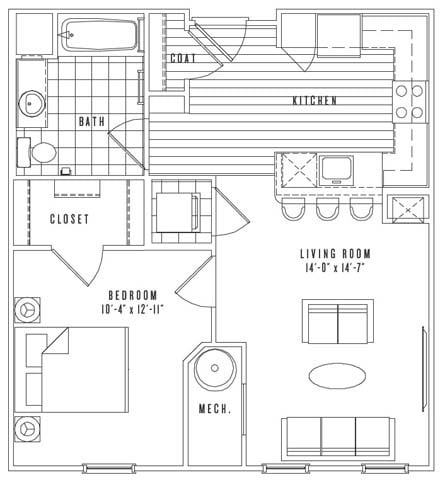 Apartment Model: A4Call For Rates1 Bedroom, 1 Bath, 742 sq ftUnavailableFloor plans are artist's rendering. All dimensions are approximate. Actual product and specifications may vary in dimension or detail. Not all features are available in every rental home. Prices and availability are subject to change. Base rent is based on monthly frequency. Additional fees may apply, such as but not limited to package delivery, trash, water, amenities, etc. Deposits vary. Please see a representative for details.