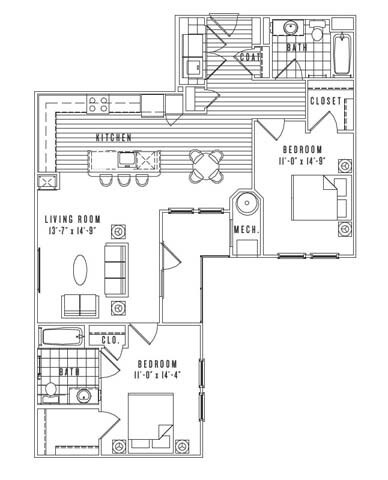 Apartment Model: A2Call For Rates1 Bedroom, 1 Bath, 706 sq ftUnavailableFloor plans are artist's rendering. All dimensions are approximate. Actual product and specifications may vary in dimension or detail. Not all features are available in every rental home. Prices and availability are subject to change. Base rent is based on monthly frequency. Additional fees may apply, such as but not limited to package delivery, trash, water, amenities, etc. Deposits vary. Please see a representative for details.