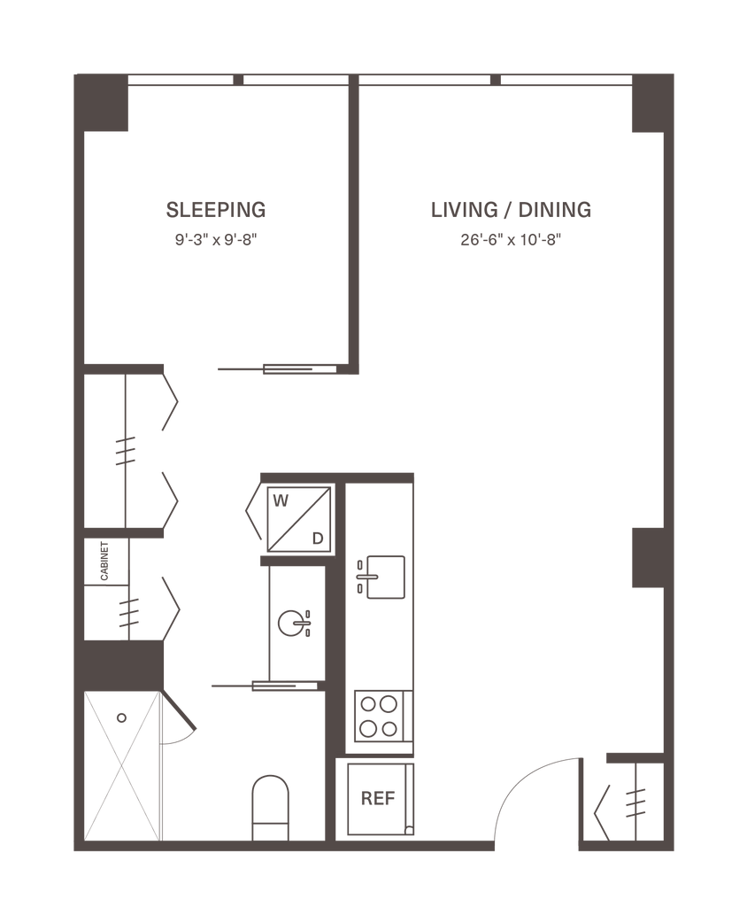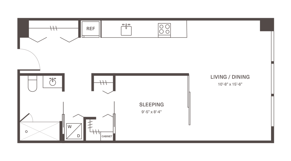 M4 - Floorplan 1 Apartment Unit: 155-412Apartment Model: M4From $2,3551 Bedroom, 1 Bath, 523 sq ftAvailable NowFloorplan M4A