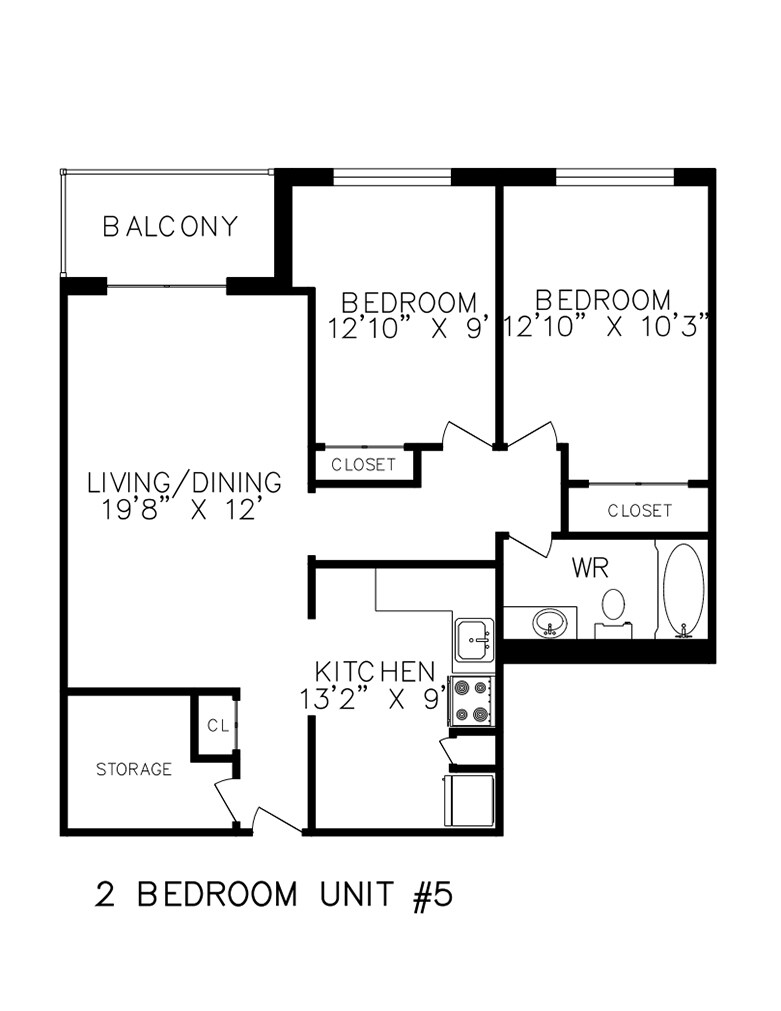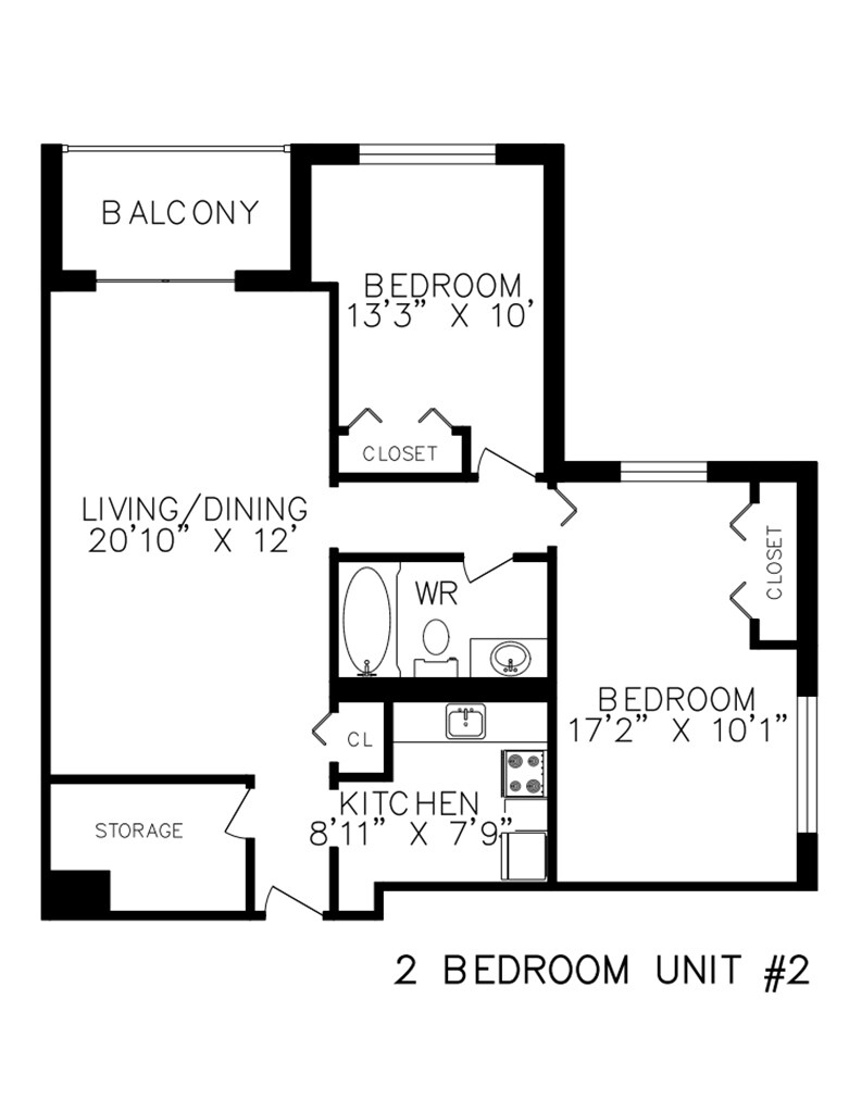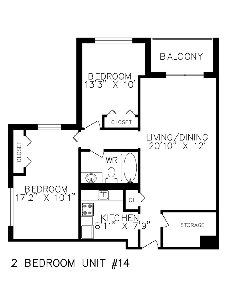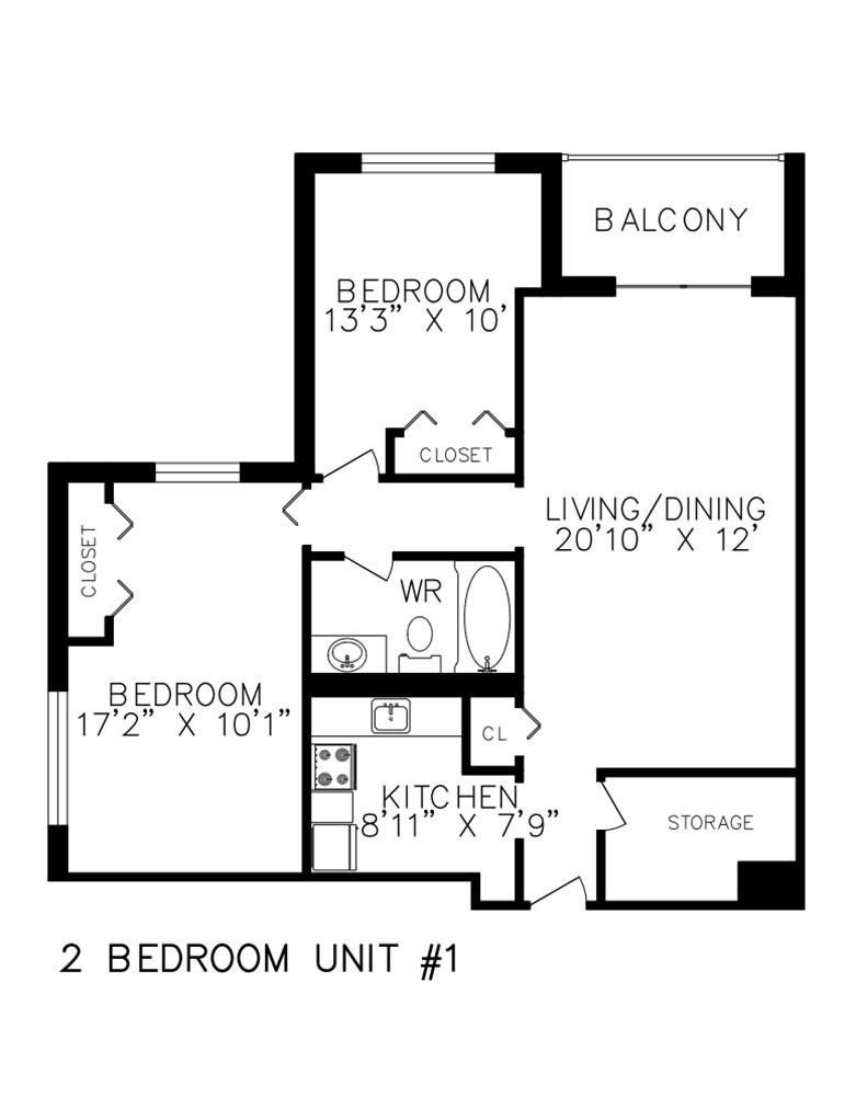 1 Bedroom - Floorplan 6 2 Bedrooms
