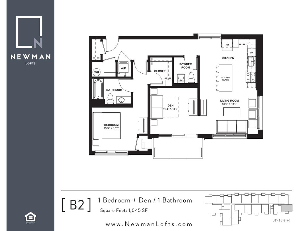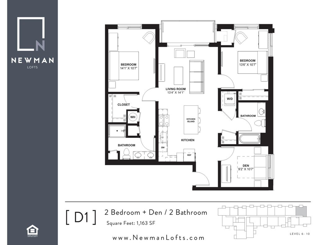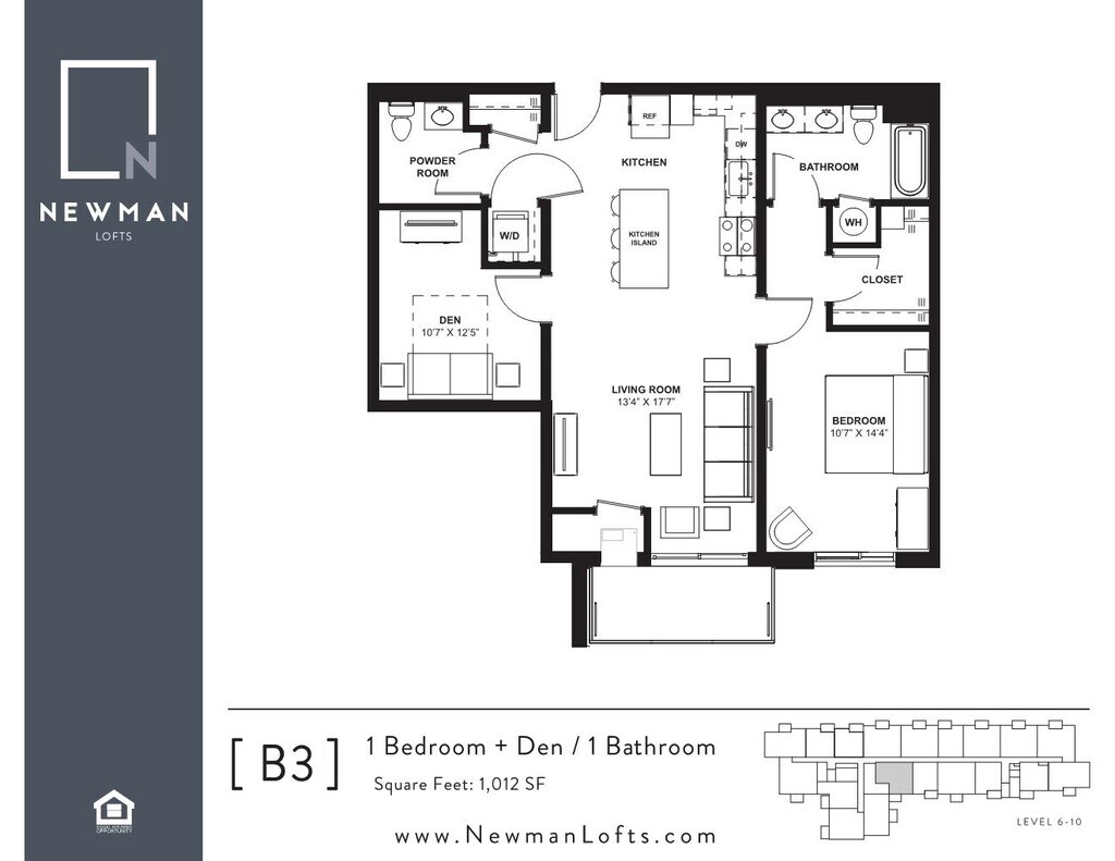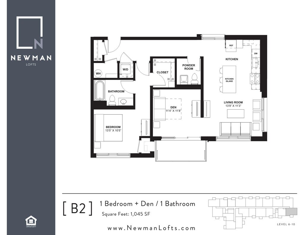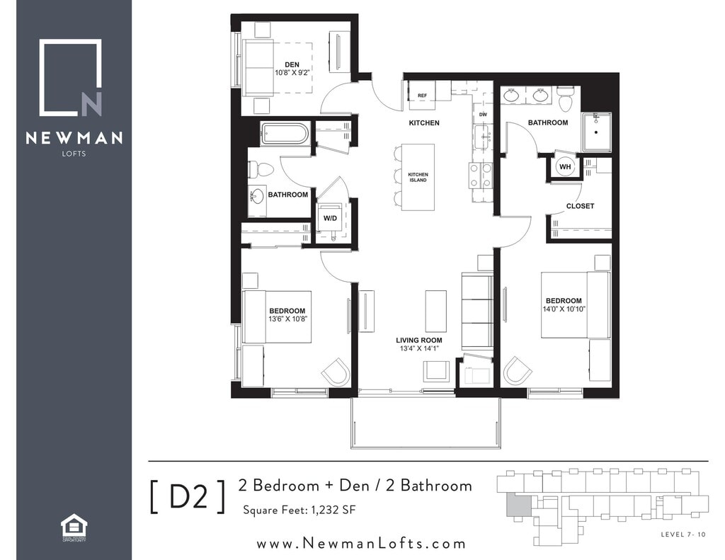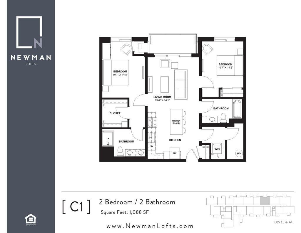 Newman Lofts offers 1 to 2 Bedroom apartments having 735–1,232 sqft. Here is the current pricing and availability: