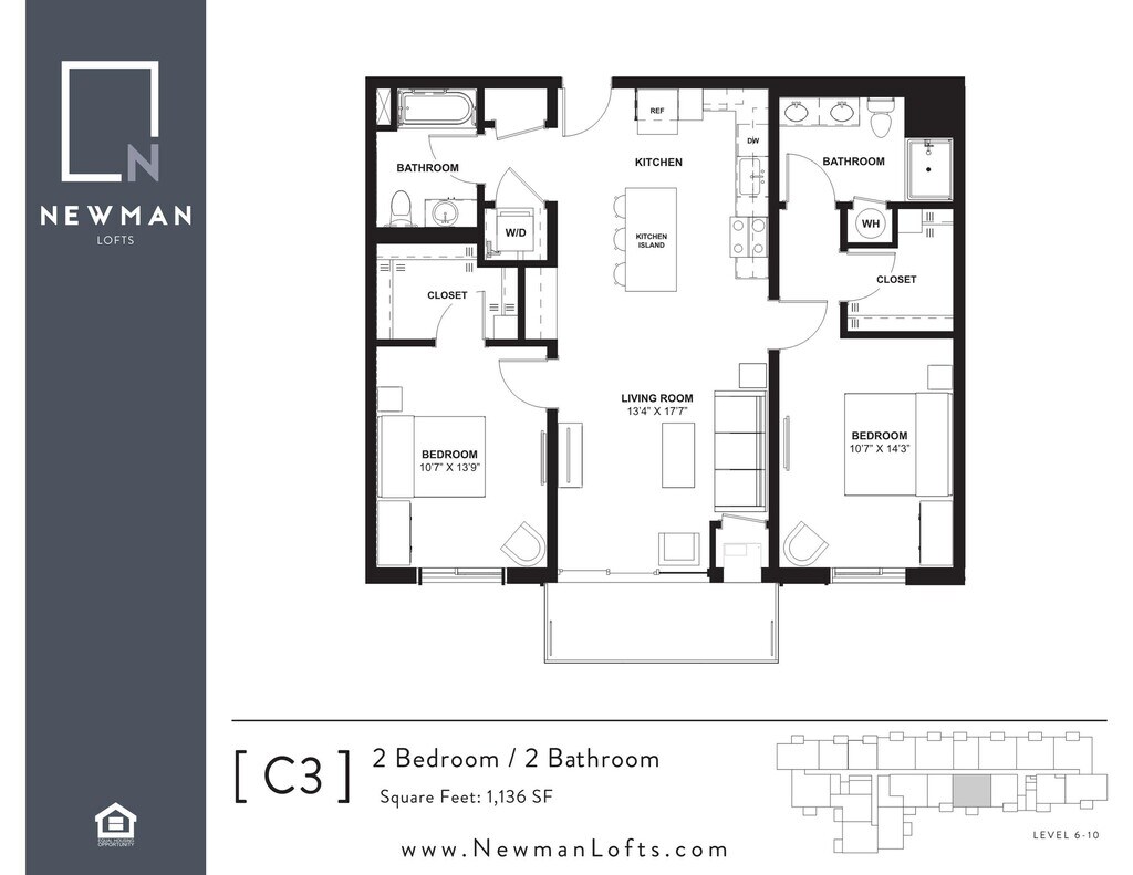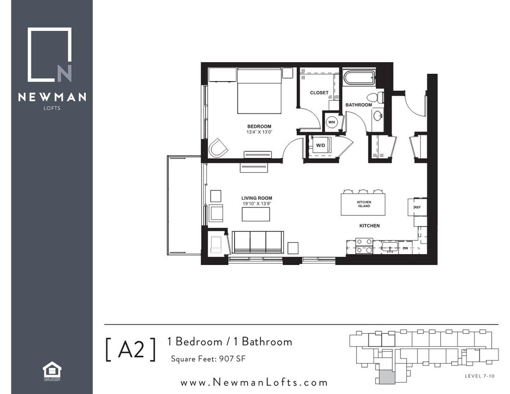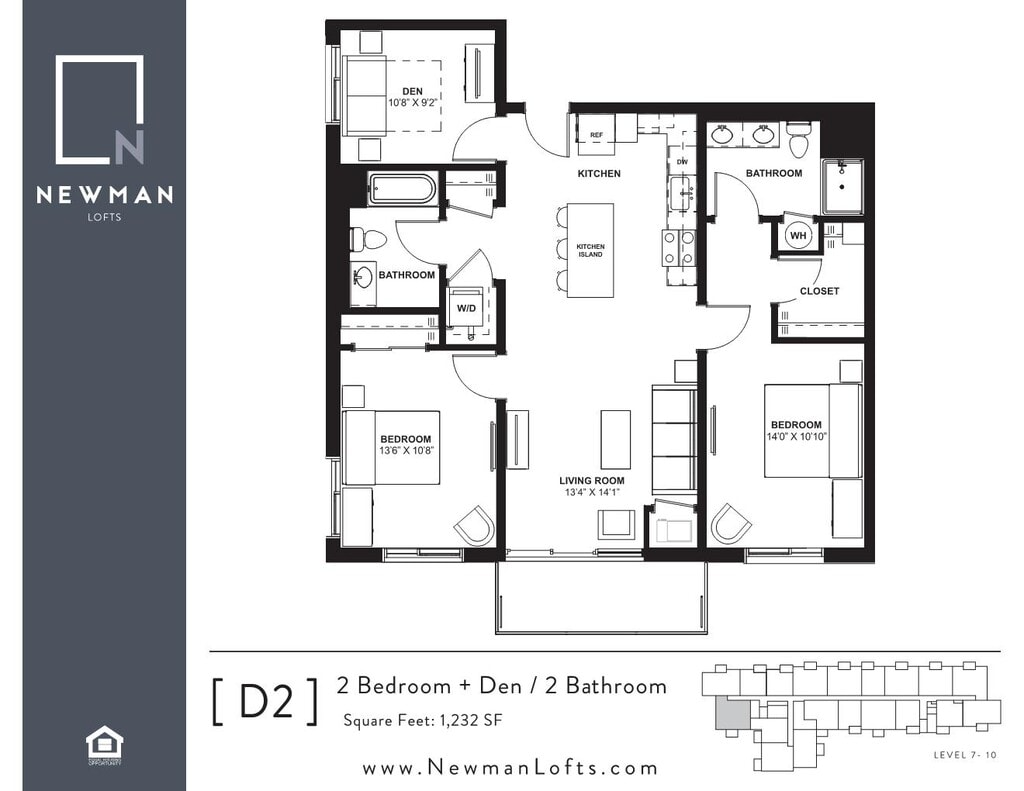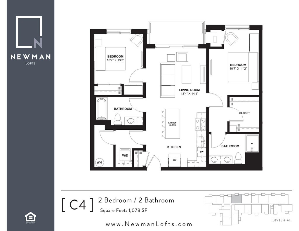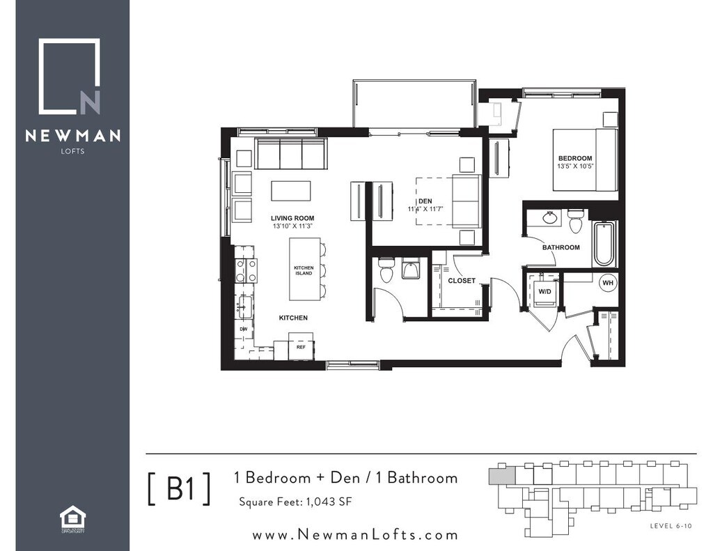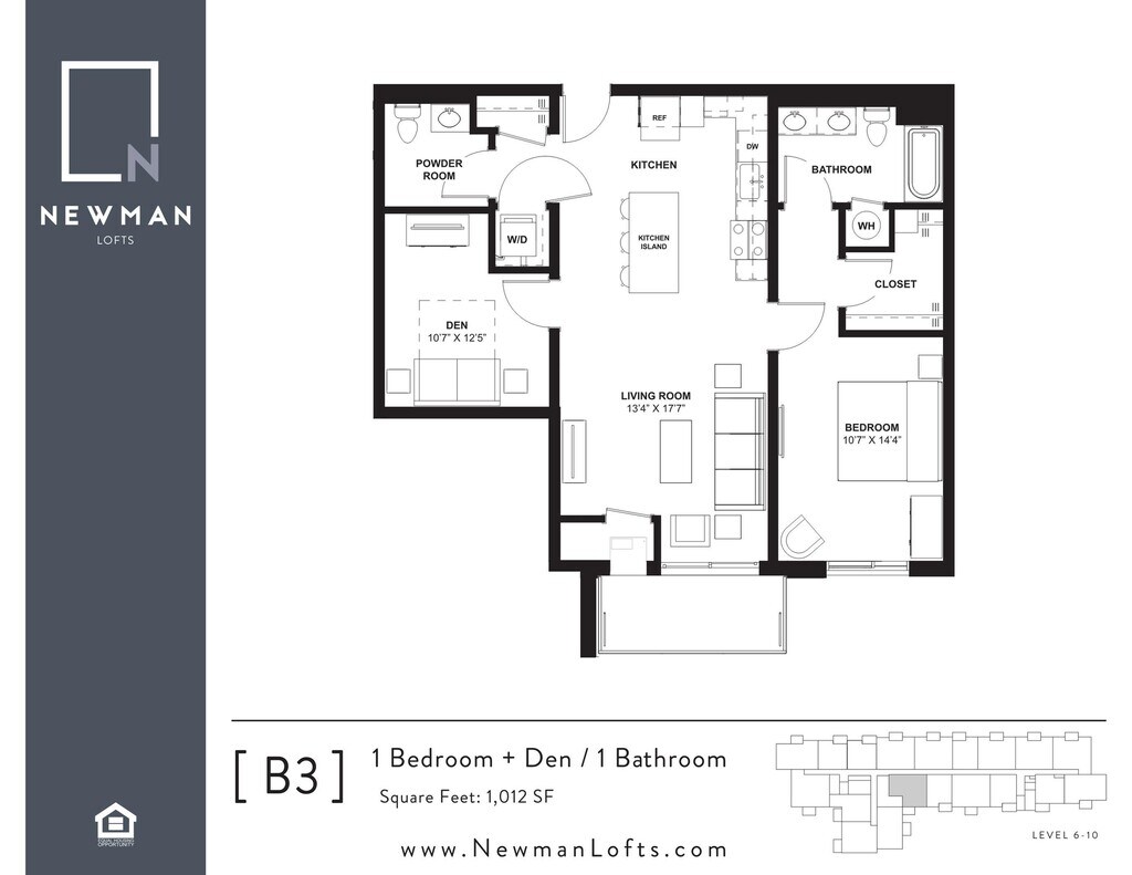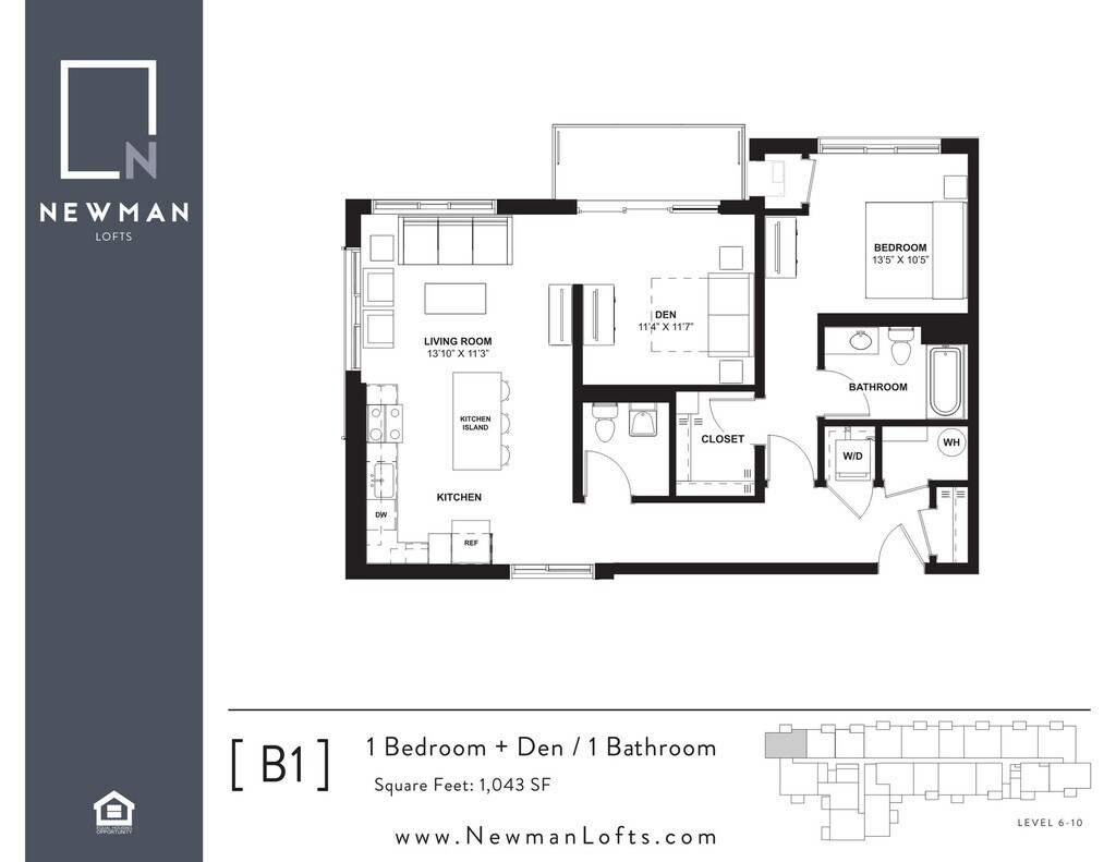 Newman Lofts offers 1 to 2 Bedroom apartments having 735–1,232 sqft. Here is the current pricing and availability: