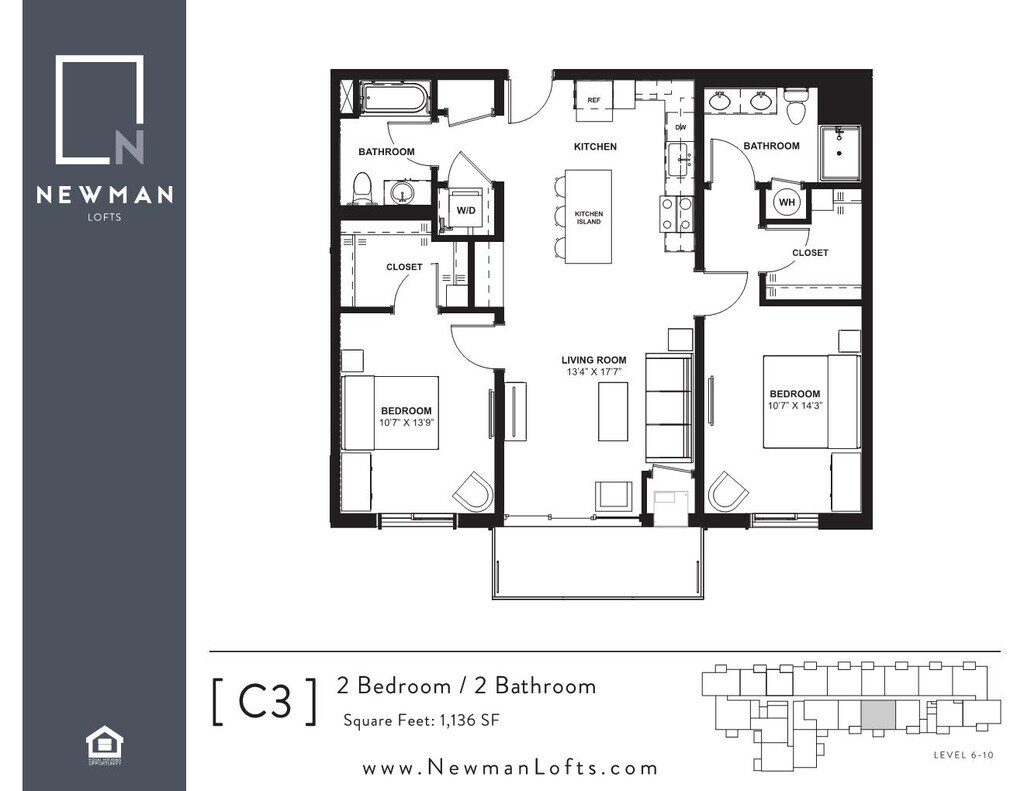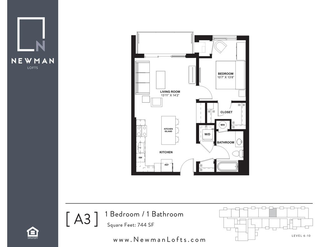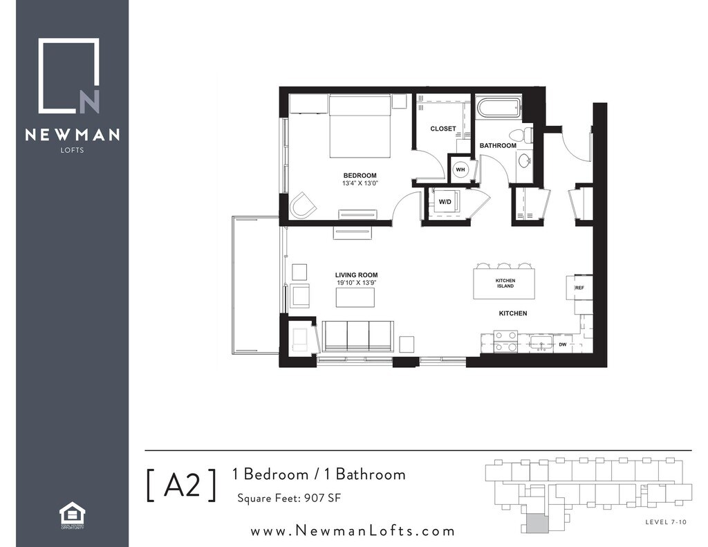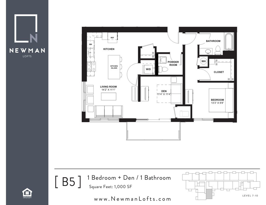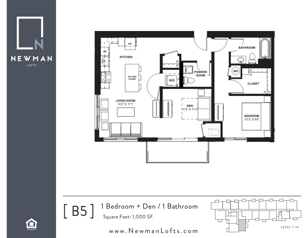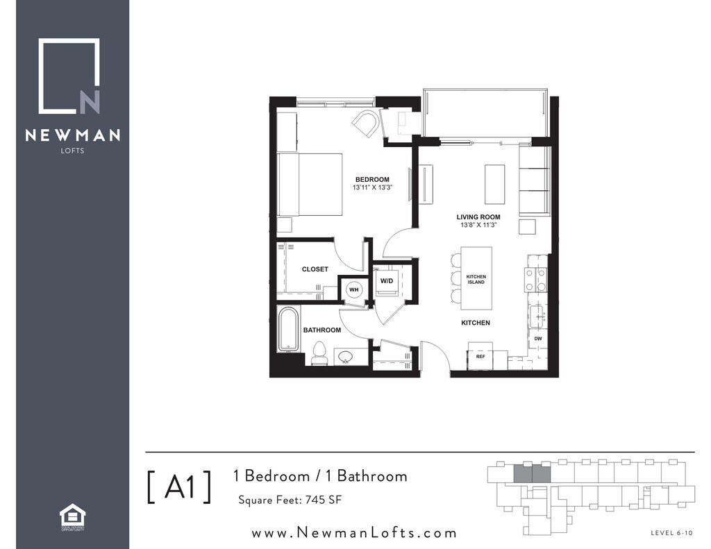 Newman Lofts offers 1 to 2 Bedroom apartments having 735–1,232 sqft. Here is the current pricing and availability: